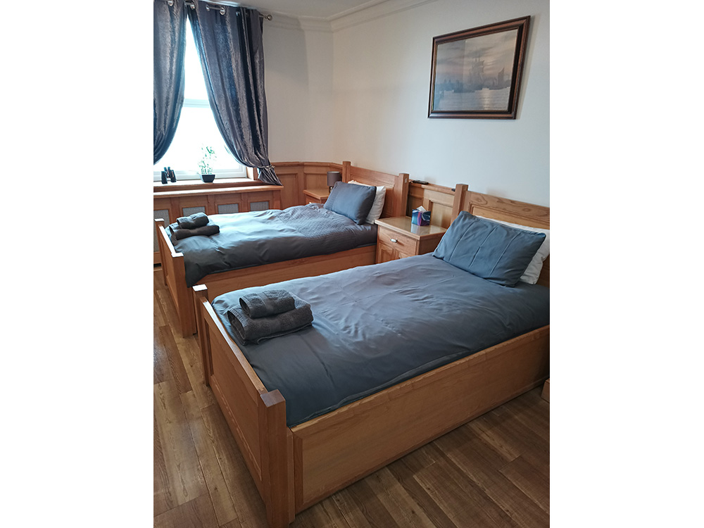 2nd Floor apartment comprises one double and one twin bedroom. All beds are electronically adjustable and both bedrooms have TV; the TV in the lounge has a 55" curved screen and Blueray player. The apartment is navigable by wheelchair.